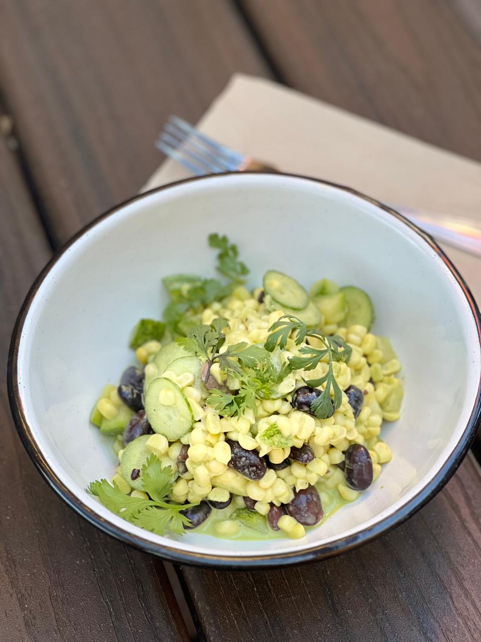 Acoyote beans, Mexican squash, sweet corn, cucumber, hoja santa dressing.